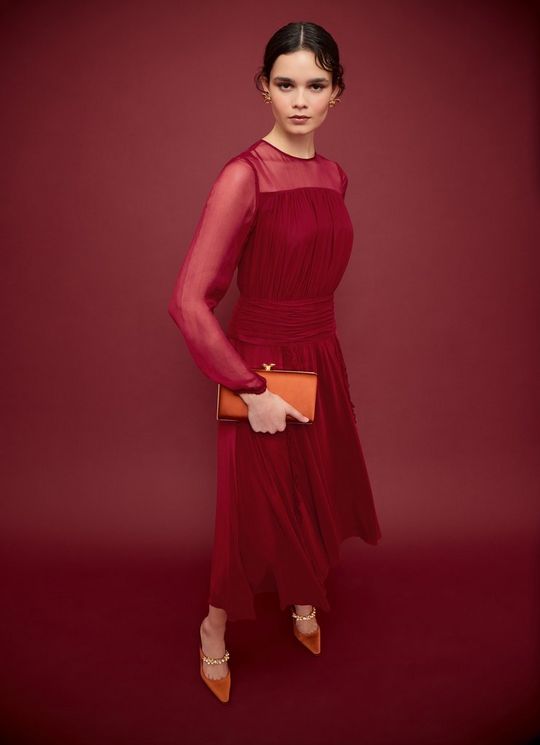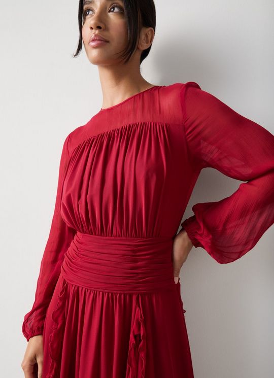 Uma Rio Red Crinkle Mesh Viscose Dress