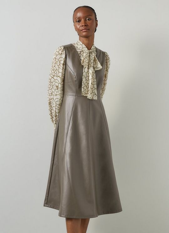 Kline Jade Crepe Tie-Neck Midi Dress
