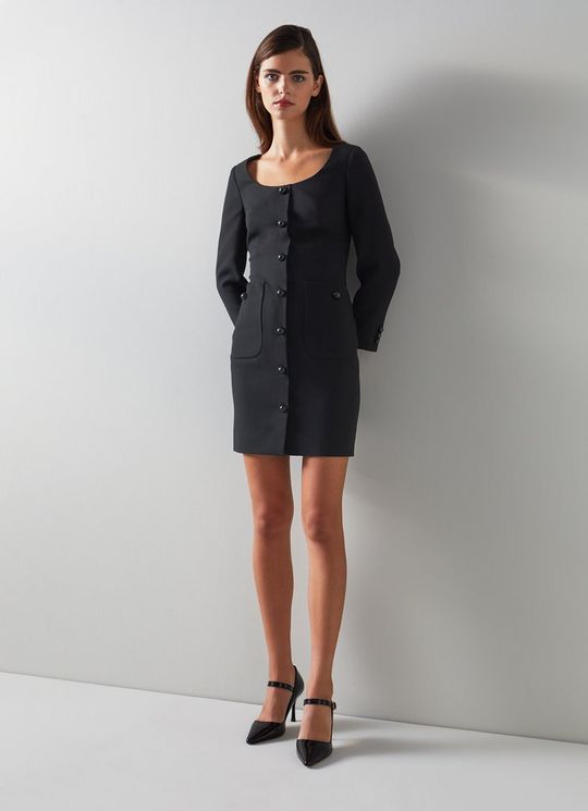 Keeler Black Crepe Button-Through Dress