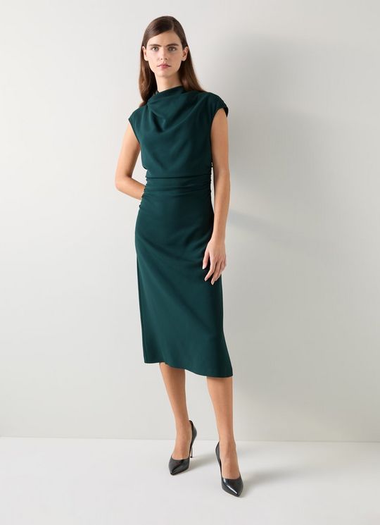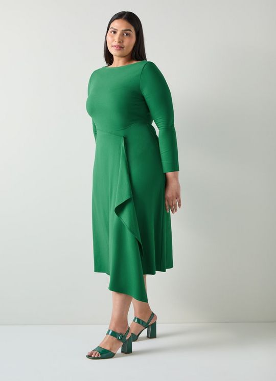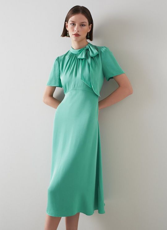 Lena Green Crepe Fit And Flare Dress