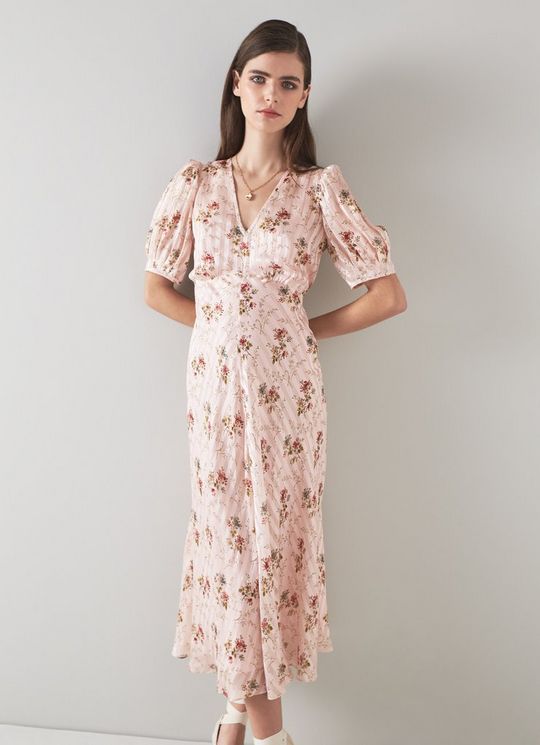Leith Pink Wildflower Potpourri Silk Metallic Stripe Dress