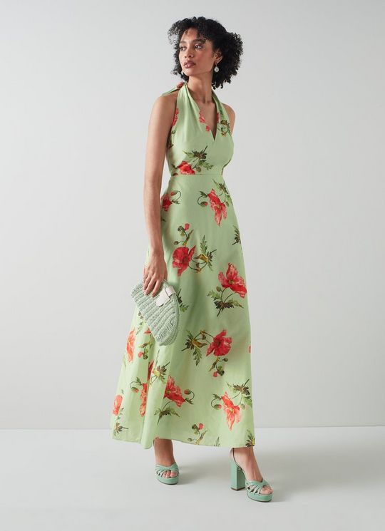 Kristen Pistachio Poppy Print Cotton-Silk Backless Dress