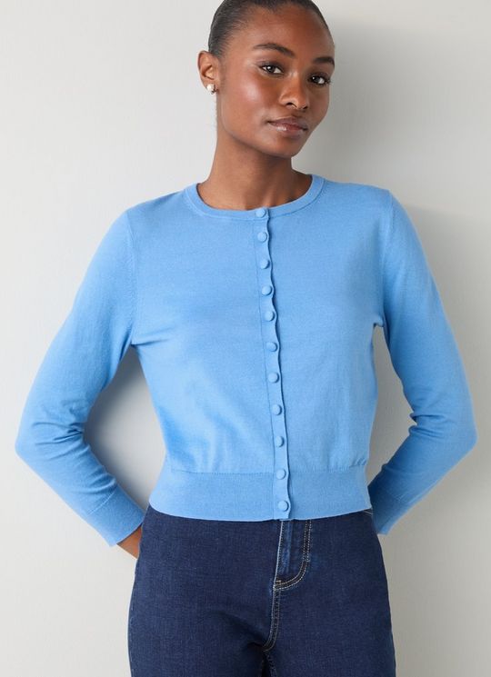 Lottie Blue Plain Fine Gauge Cardigan
