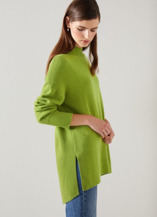 Milly Lime Sustainably Sourced Merino Dipped Hem Jumper