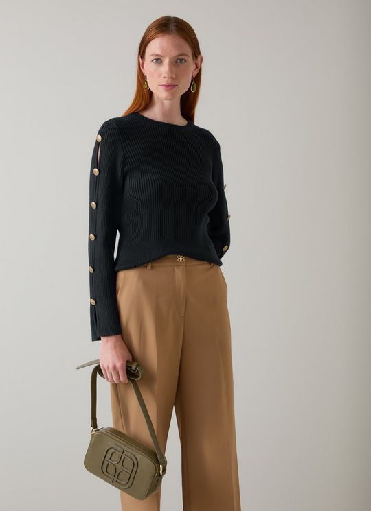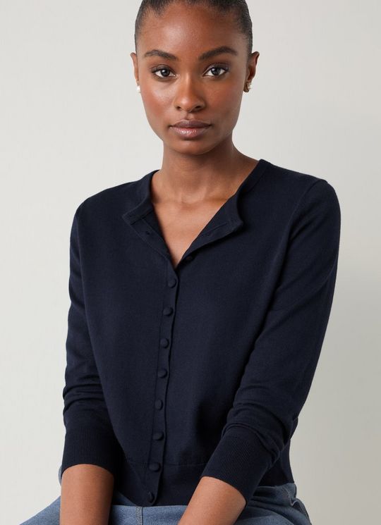Mirren Midnight Cotton Shank Button Jumper