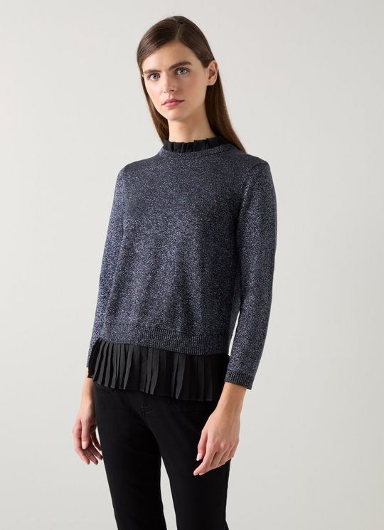Mary Black Pleated Detail Organic Cotton Knit Jumper
