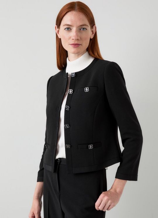 Claire Black Plain Collarless Jacket