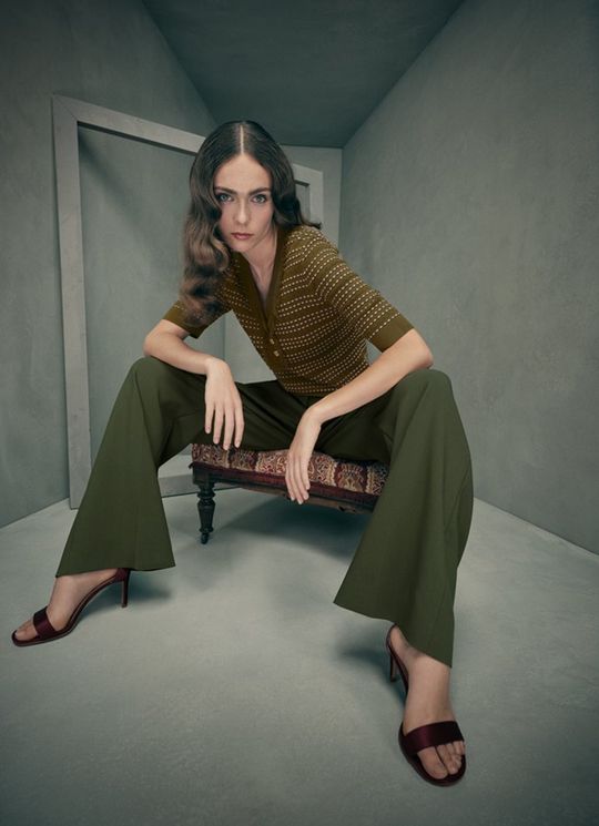 Fran Green Fringed Contrast Ottoman Top
