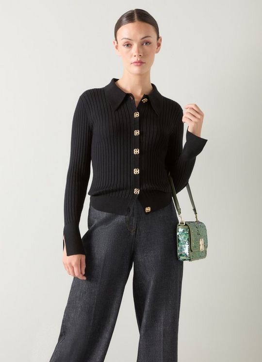 Willow Black Cotton Rib Collar Cardigan