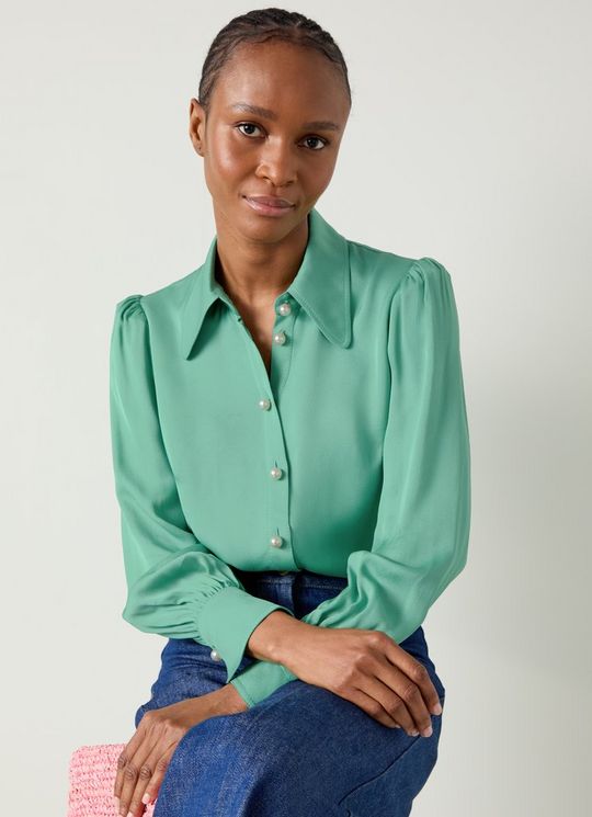 Sonya Light Mint Satin Crepe Blouse