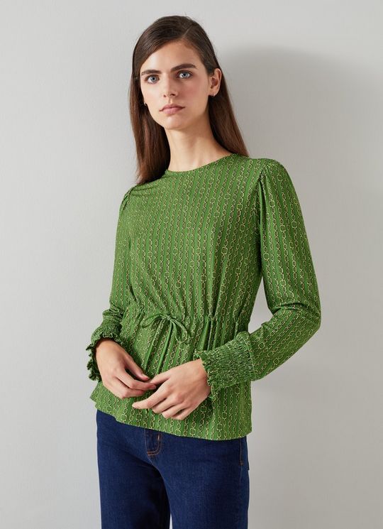 Ellie Green Chain Print Drawstring Top