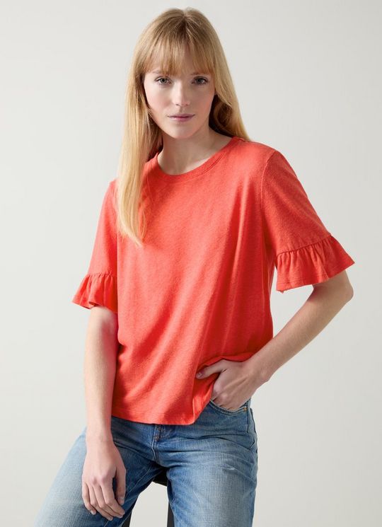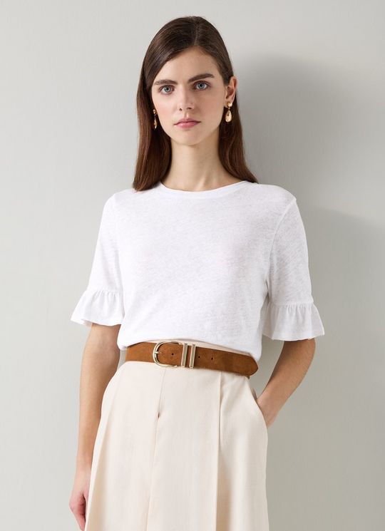 Gene Linen Frill T-Shirt In White