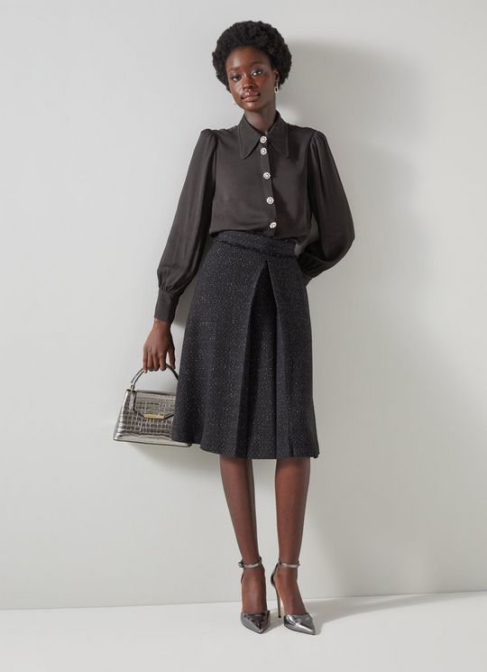 Sonya Black Crepe Crystal Button Blouse
