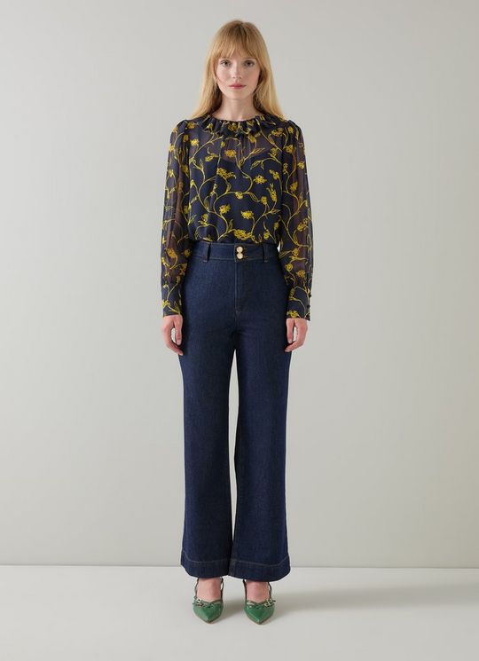 Erin Spring Navy & Gold Floral Blouse