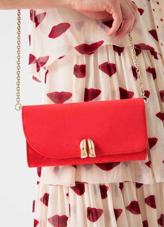 Florence Aurora Red Suede Long Clasp Clutch Bag