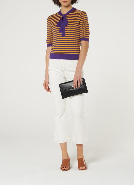 Dora Black Leather Envelope Clutch