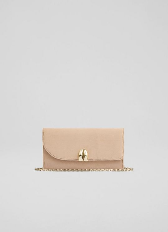Florence Neutral Suede Curve Flap Clutch Bag