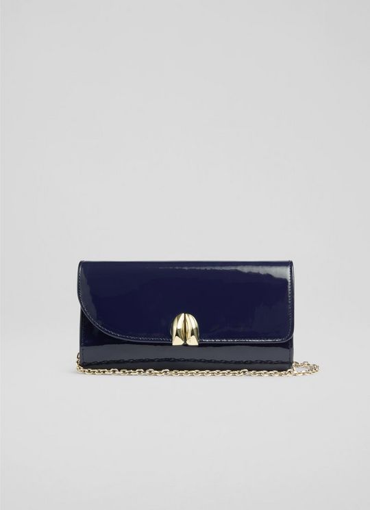Florence Navy Patent Curve Flap Clutch Bag