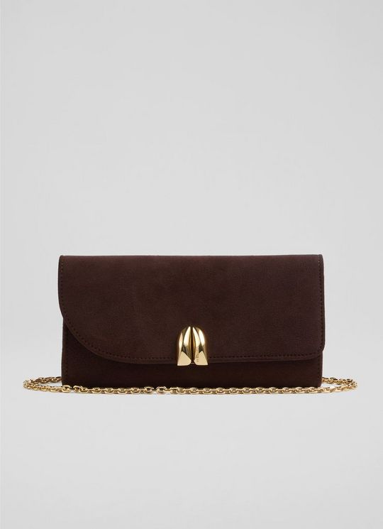 Florence Chocolate Suede Clutch Bag