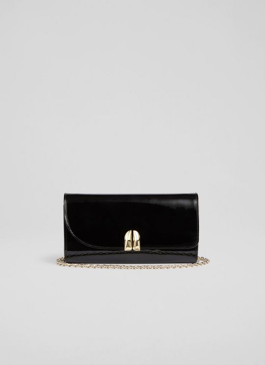 Florence Black Patent Curve Flap Clutch Bag