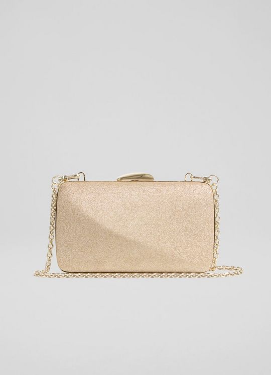 Charlotte Champagne Glitter Oloid Box Clutch Bag