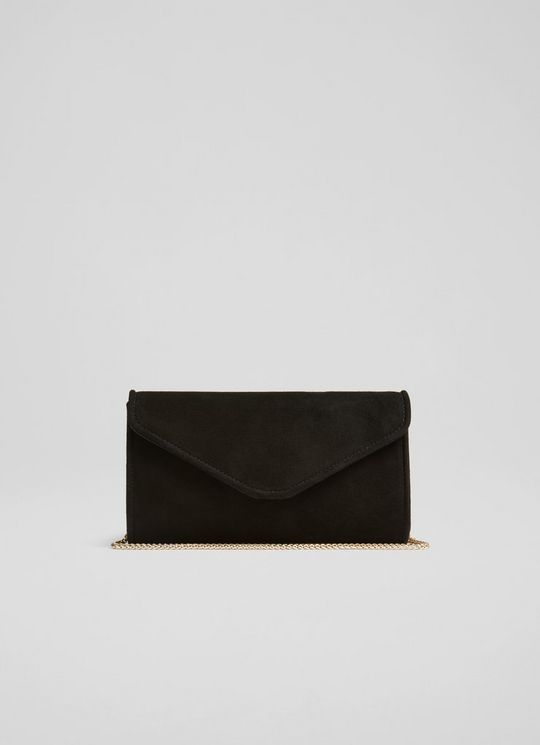 Dominica Black Suede Clutch Bag