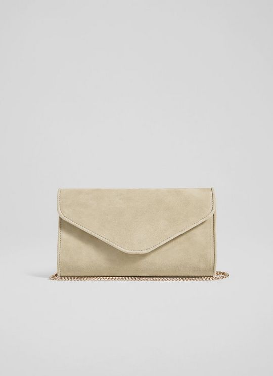 Florence Neutral Suede Curve Flap Clutch Bag