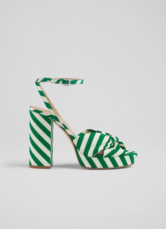 Amanda Cream and Red Spot Fabric Platform Sandals