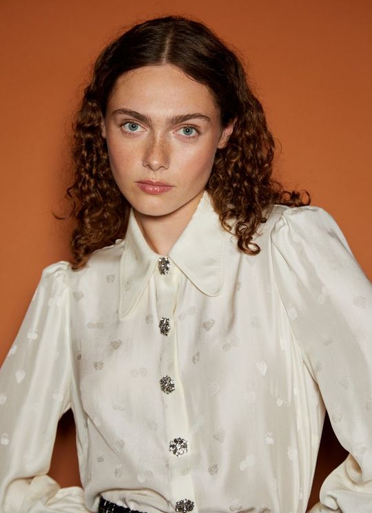 Sonya Cream Silk Fruit Jacquard Blouse