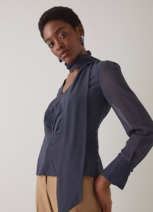 Rosie Midnight Houndstooth Print V Neck Blouse