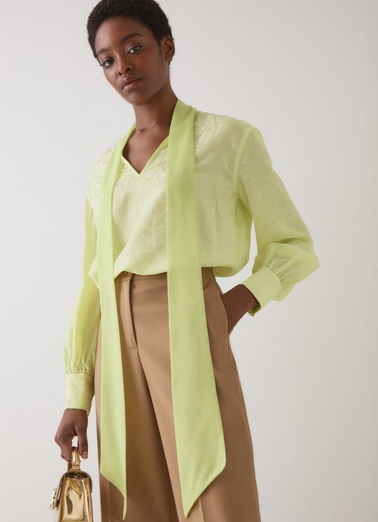Maggie Green Jacquard Print Silk Blend Blouse