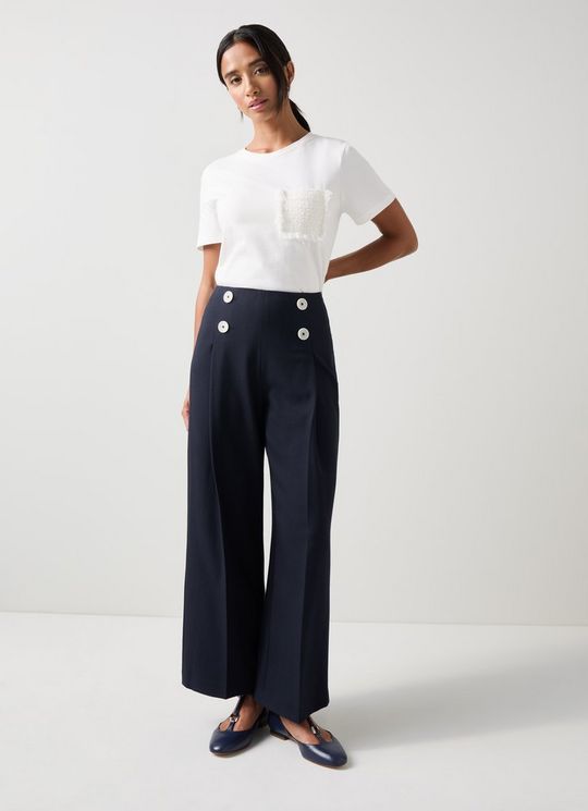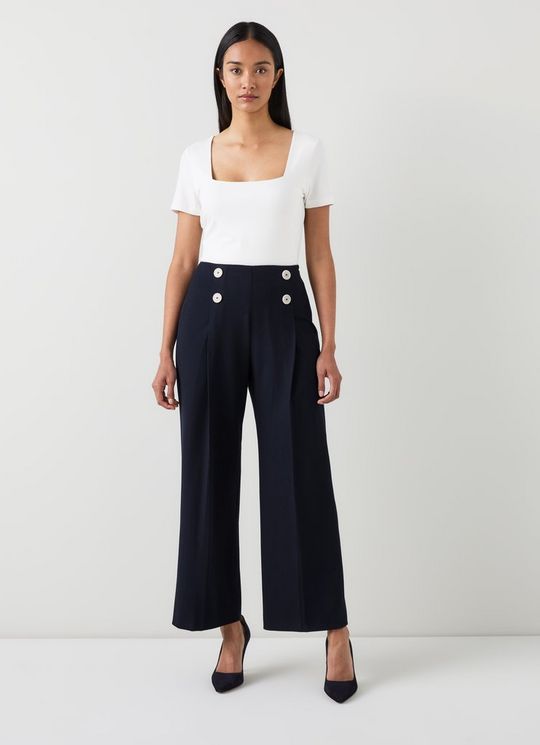 Parker Petite Spring Navy Recycled Crepe Wide-Leg Trousers
