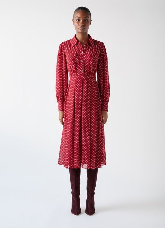 Cody Red Polka Dot Print Pocket Shirt Dress