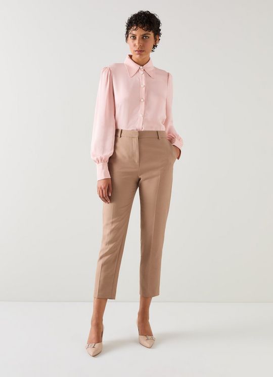 Frances Camel Plain Linen Mix Pleat Front Trousers