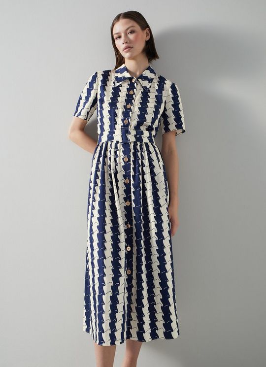 Calder Navy and Cream Wavy Stripe Shirt Dress