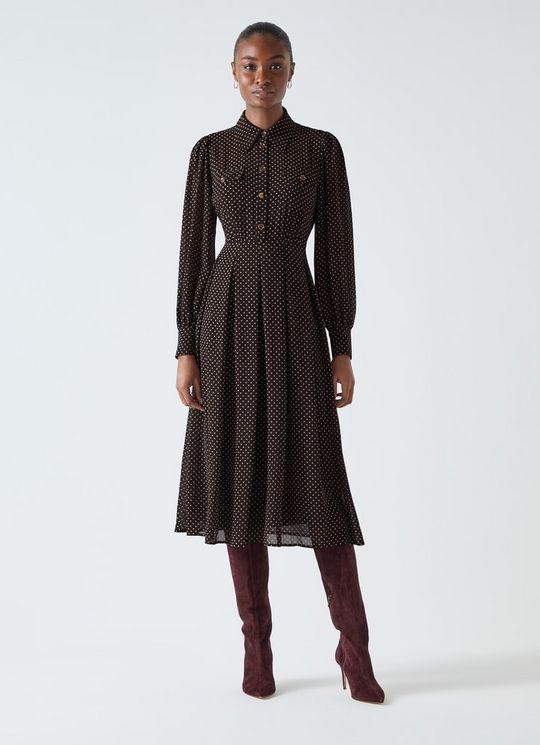 Cody Brown Polka Dot Print Pocket Shirt Dress