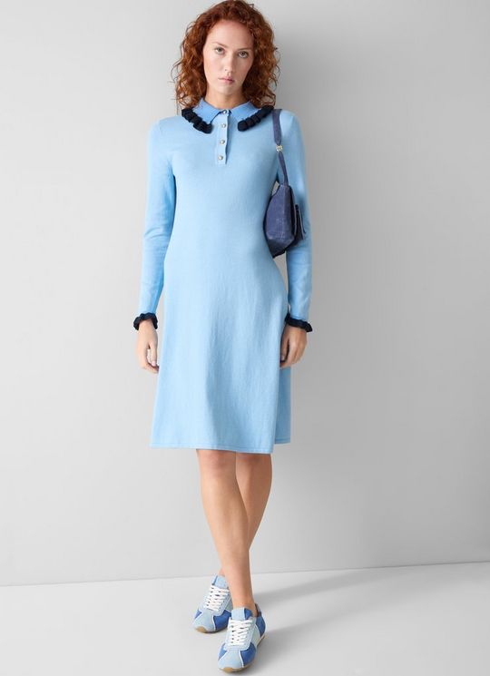 Calder Navy and Cream Wavy Stripe Shirt Dress