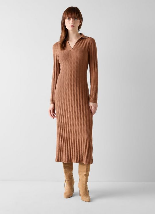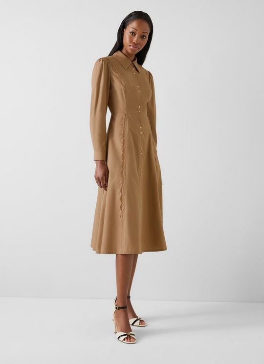 Plum Camel Plain Tencel Relaxed Shirt Dress