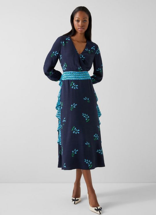 Ramona Navy Bow Print Silk Mix Tea Dress
