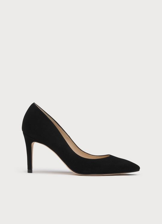 Classic Floret Black Suede Pointed Toe Courts