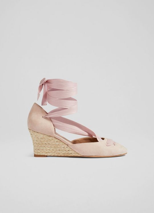 Lana Pink Suede Crossover Strap Espadrille Wedges