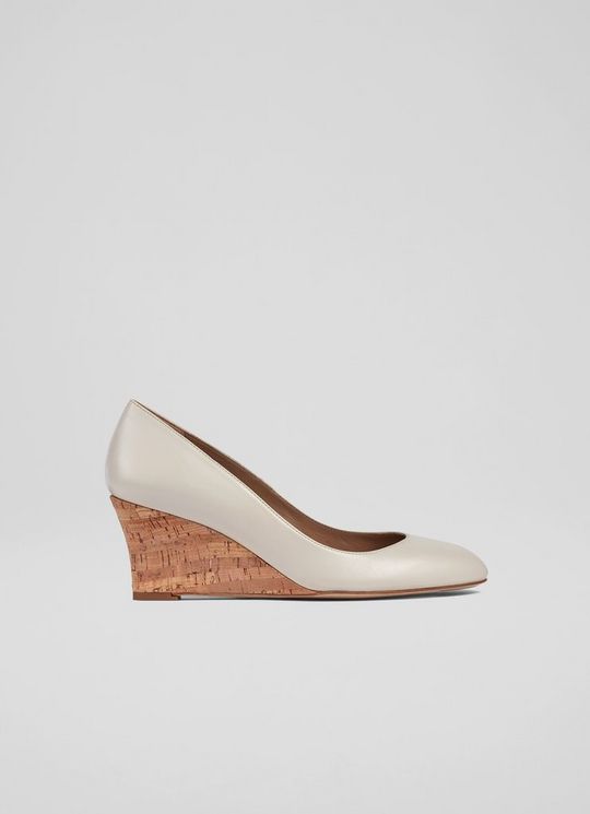 Eevi Ecru Leather Cork Wedges