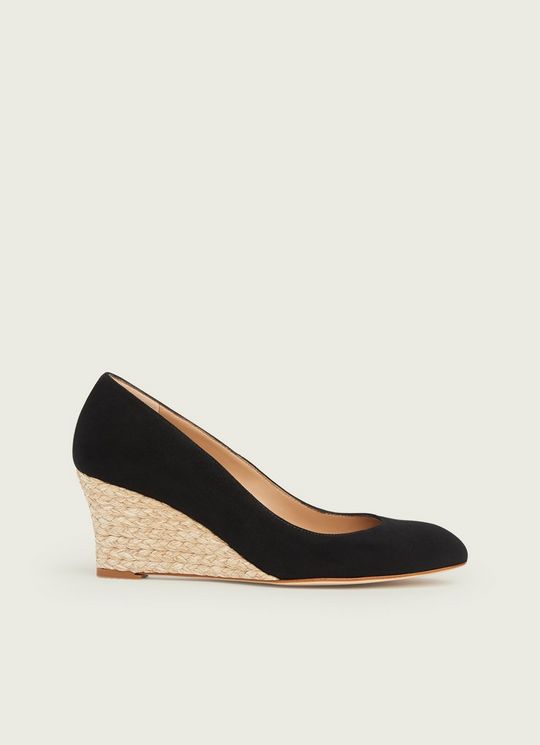 Eevi Black Suede Espadrille Wedges