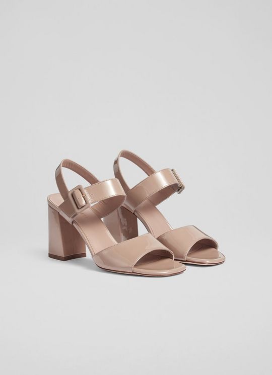 Rae Beige Patent Leather Large Buckle Sandals