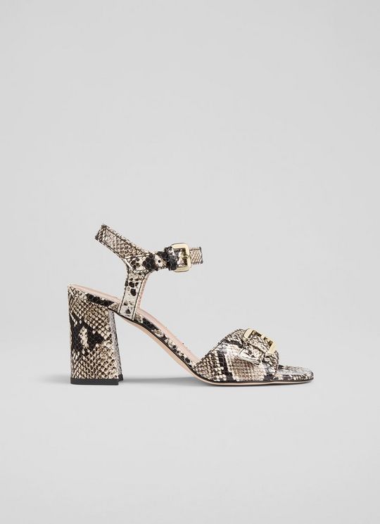 Reeva Black & White Snake Effect Buckle Sandals