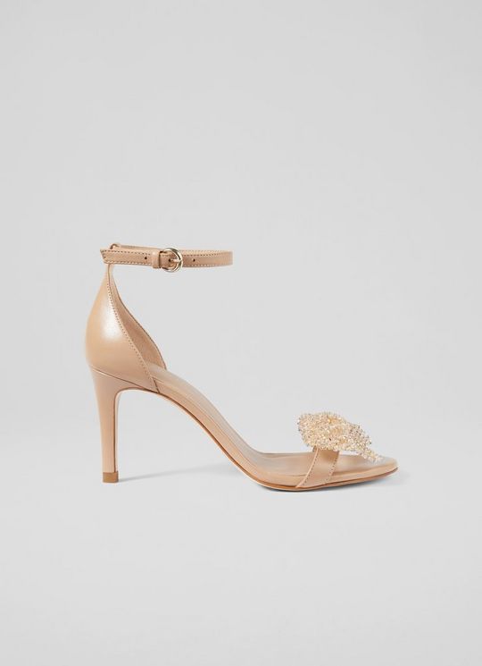 Cristabel Beige Leather Sparkle Bow Sandals