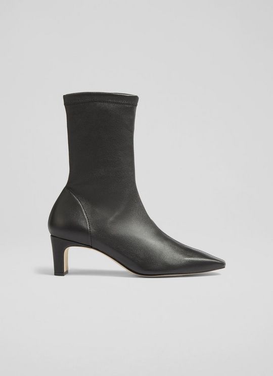 Harp Black Leather Block Heel Stretch Ankle Boot