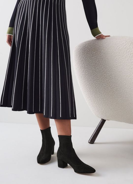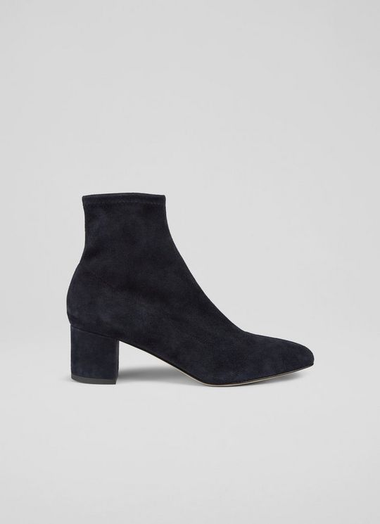 Grove Navy Suede Low Block Stretch Ankle Boots