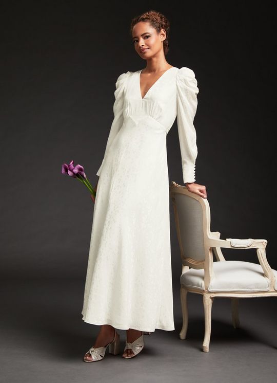 Rose Ivory Silk Floral and Spot Jacquard Wedding Dress