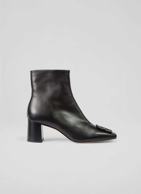 Hattie Black Leather Ankle Boots